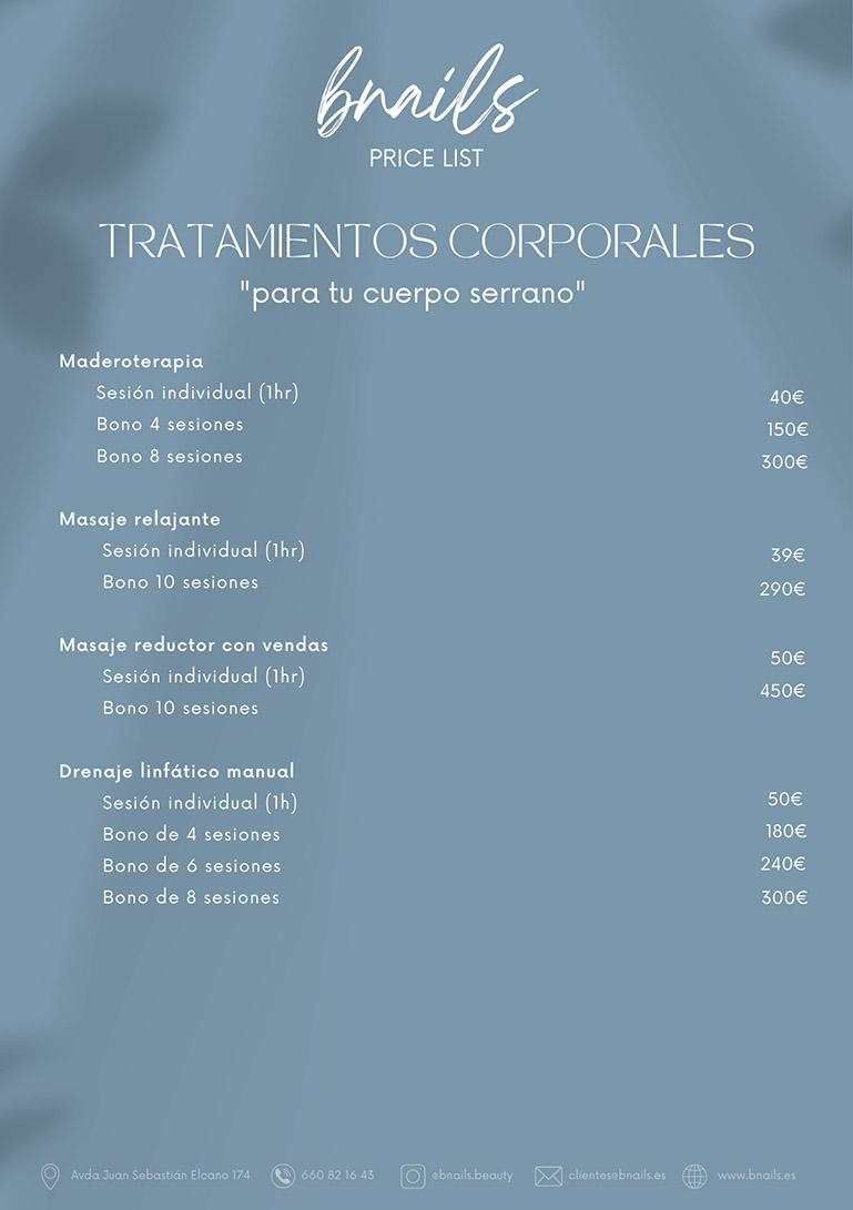 Bnails quiere avanzar en el camino para conseguir que brilles y que te sientas bien cuidándote, por eso ofrecemos, además del cuidado de tus manos y tus pies, tratamientos faciales con los mejores productos del mercado y ahora NUEVO!: Maderoterapia, masajes corporales y mucho más….